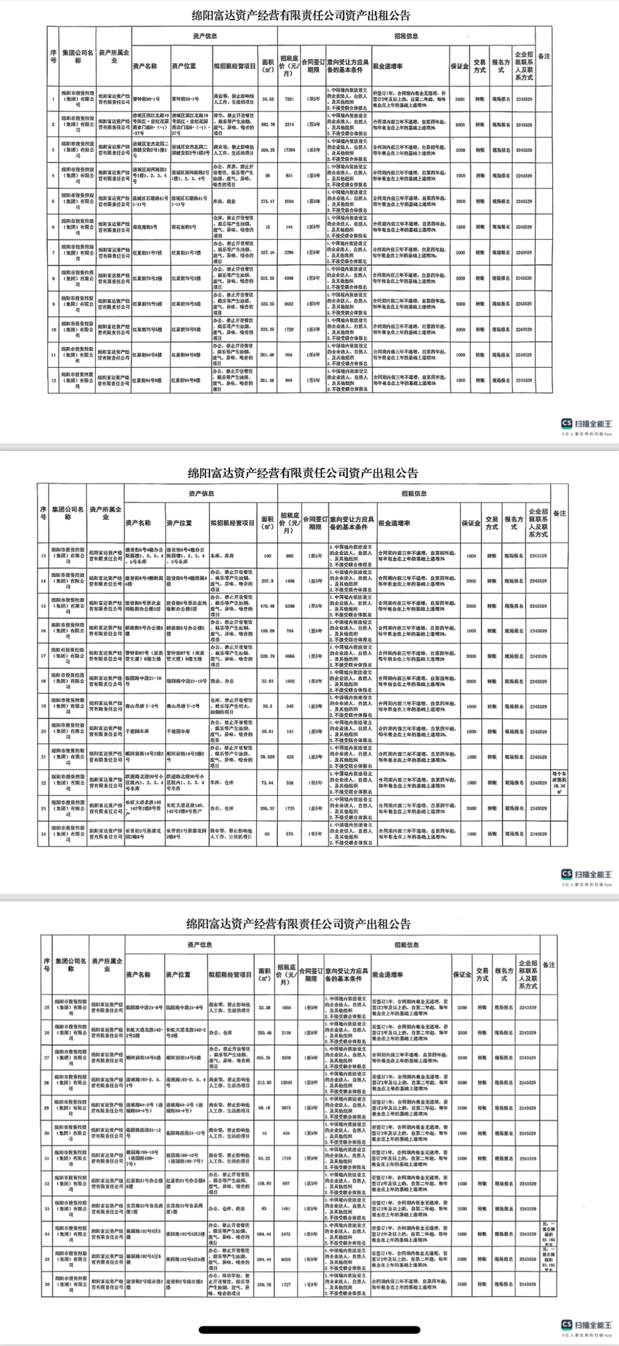 綿陽(yáng)富達(dá)資產(chǎn)經(jīng)營(yíng)有限責(zé)任公司資產(chǎn)出租公告